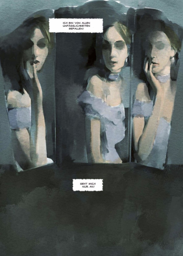 Die mit Aquarelltechnik in eine gewisse Distanz gebrachten Akte der Marquise teilen gleichzeitig durch ihre Inszenierung und Gestik noch etwas von den Empfindungen Kleists mit, verbunden mit dem Selbstverständnis heutiger Menschen. Damit ist etwas faszinierend Neues entstanden.